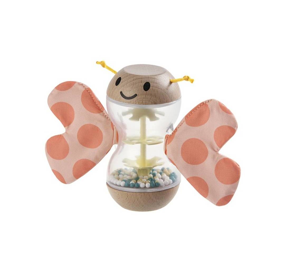 Este palo de lluvia en forma de mariposa ofrece una experiencia sensorial relajante y divertida. Al girarlo, las bolitas en su interior producen un sonido suave que calma y entretiene a los más pequeños. Su diseño colorido y texturizado estimula el sentido del tacto y la vista, ayudando en el desarrollo sensorial. Perfecto para momentos de juego o para favorecer el sueño desde los 0 meses.