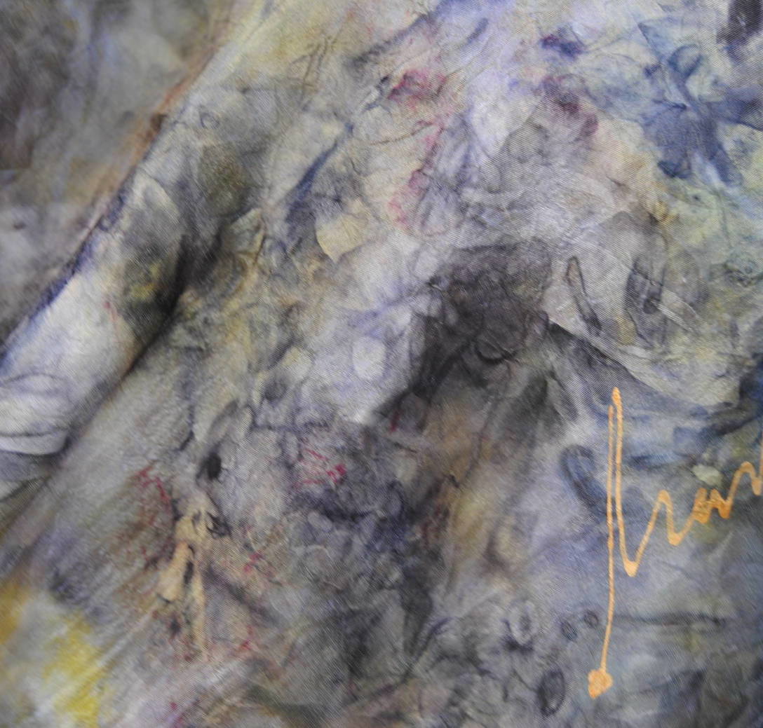 Pañuelo de seda de 55x55 pintado a mano en colores oscuros, ideal para regalar estas fiestas