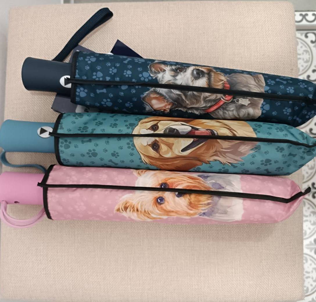 Paraguas automático marca TOTEZ antiviento diseño de perritos