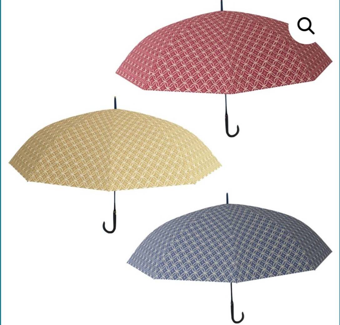 Paraguas automático antiviento y largo. En tres colores con estampado geometrico. Mostaza ,granate y azul marino