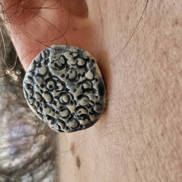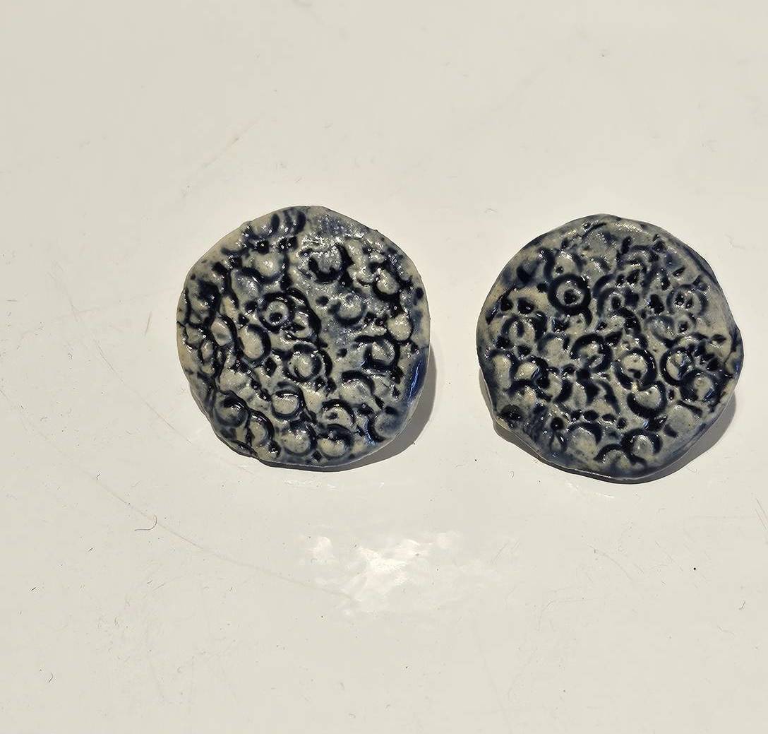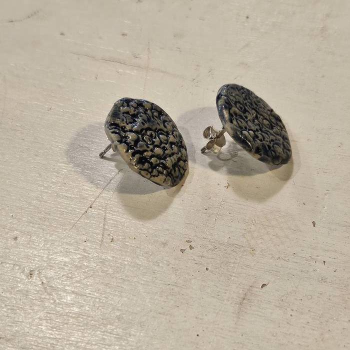 Pendientes de gres hechos a mano con acabado texturado y esmalte azul ultramar.