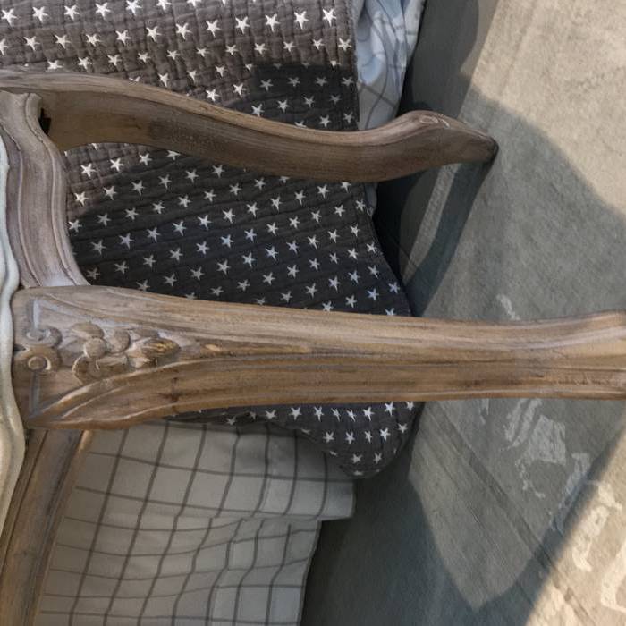 Oheko oina banku-lihoz estalitako tapizarekin.