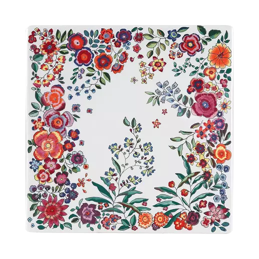 Plato cuadrado de 29,5 x 26,5 cm con decoración floral de la colección poesie de Gien.