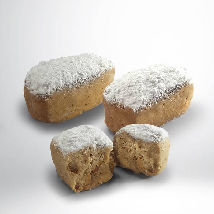 Elaboramos nuestros polvorones con el 34% mínimo de almendra repelada Marcona, molida y en trozo, con un sutil toque de canela y limón, consiguiendo un intenso sabor a almendra.