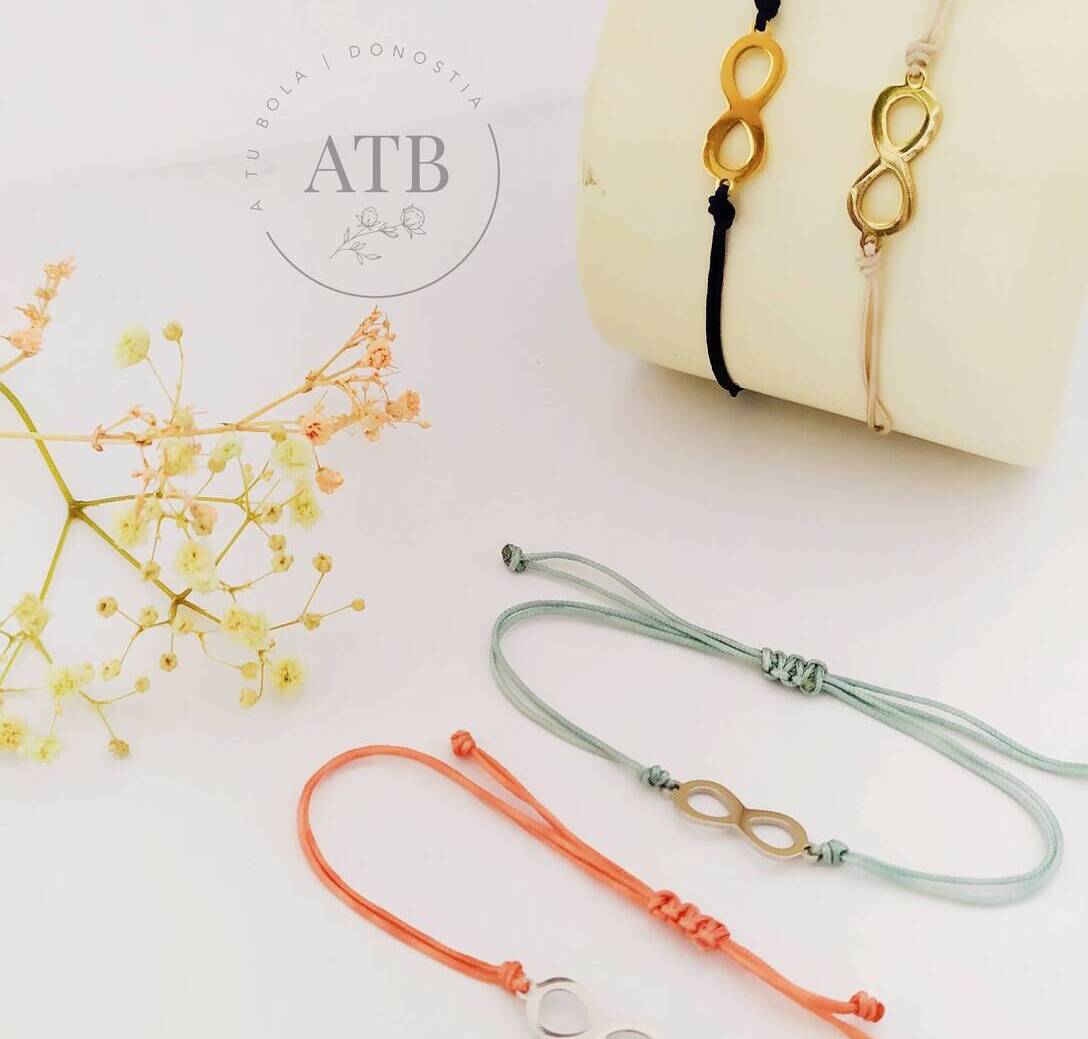 Material: cordón poliéster . Infinito de acero inoxidable y baño de oro 18k.