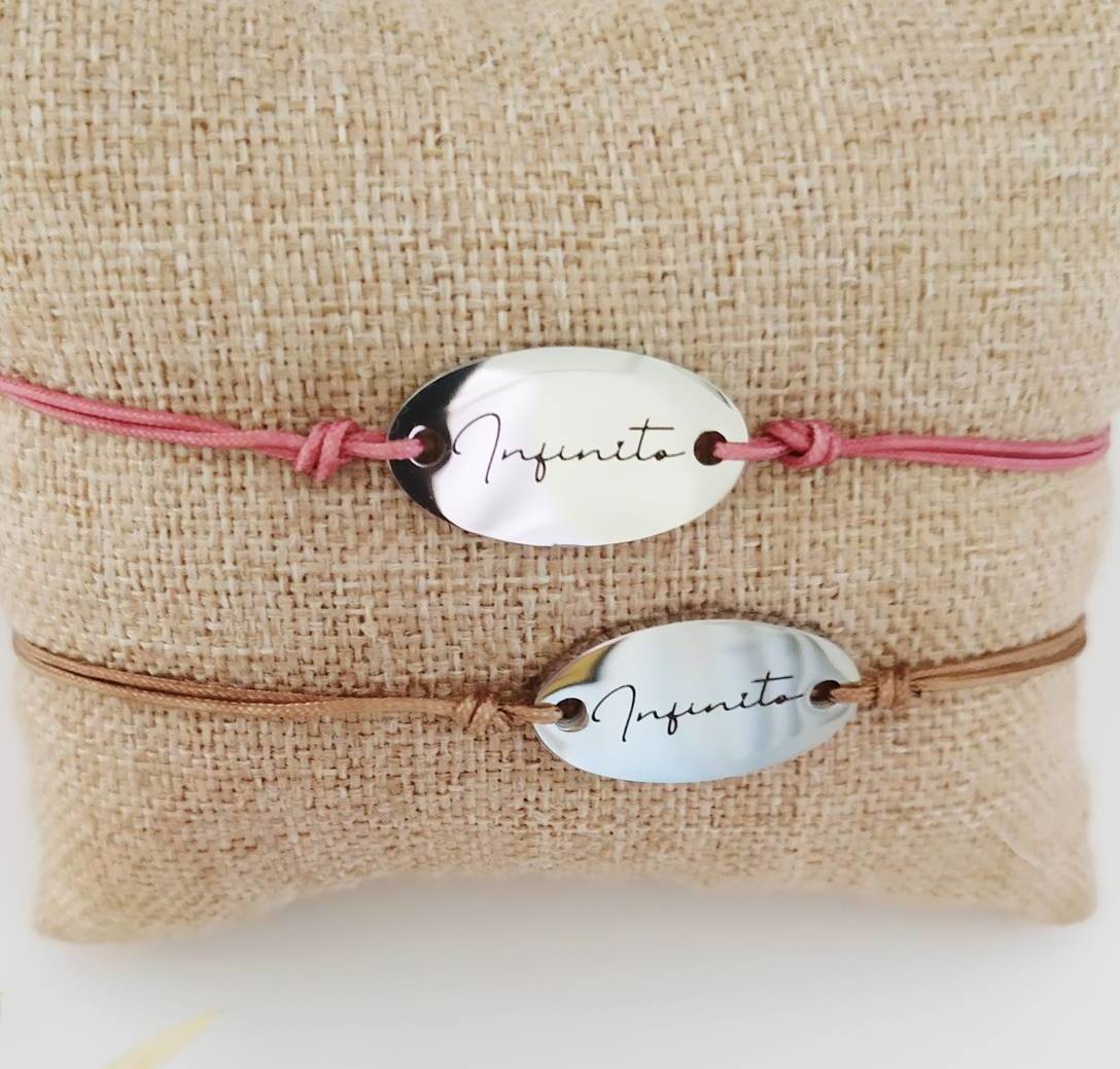 Pulsera chapita palabra "infinito" grabada en ella. Una palabra con muchos significados e ideal para regalar a tu persona especial o para auto regalarse. Cada uno sabrá el porqué de la palabra infinito en su muñeca!