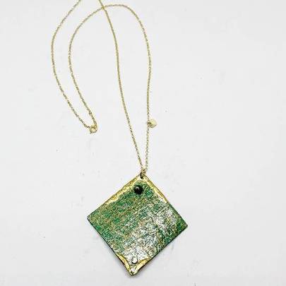 Collar con colgante de papel verde y cadena de plata
