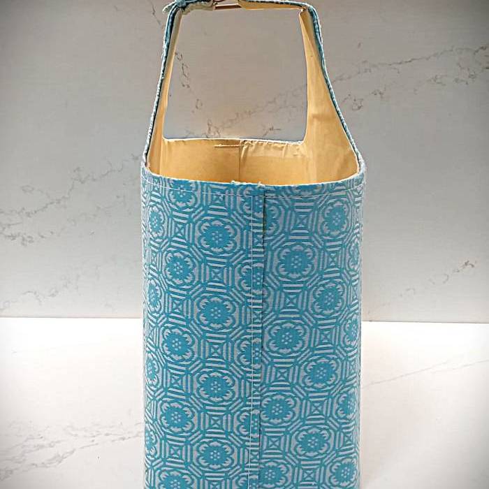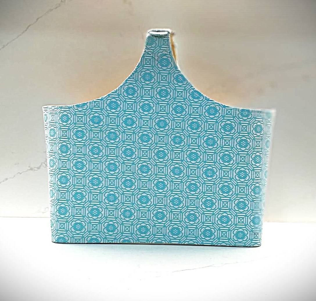 REVISTERO DE PVC FORRADO DE TELA AZUL Y BLANCO MEDIDAS: H 36cm X 40cm X 15cm