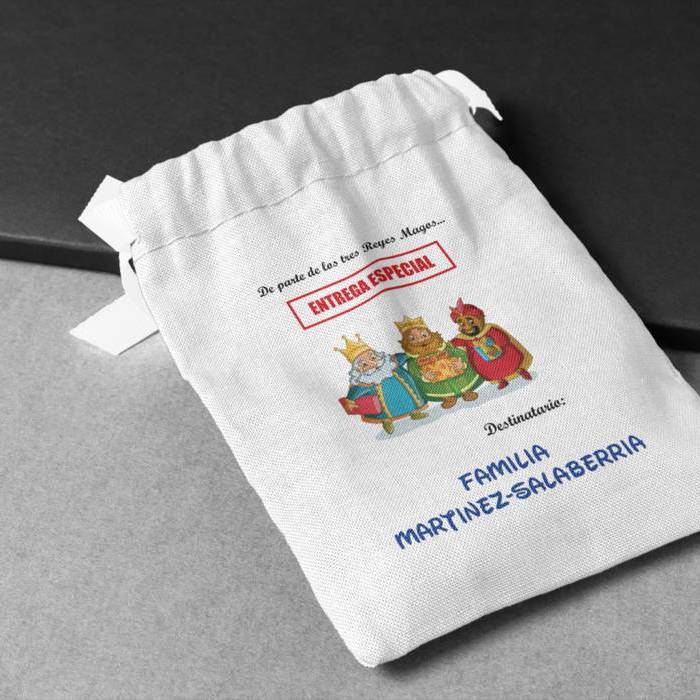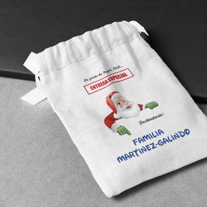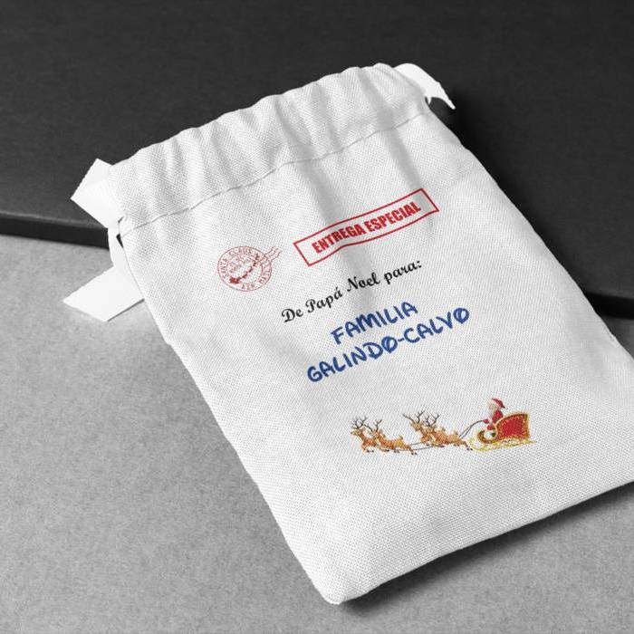 Descubre nuestros sacos de Navidad personalizados y sorprende a familiares y amigos. Con diseños de Olentzero, Papá Noel y Reyes Magos es un detalle que seguro no pasa desapercibido. Medidas 50x75cm, 100% algodón.