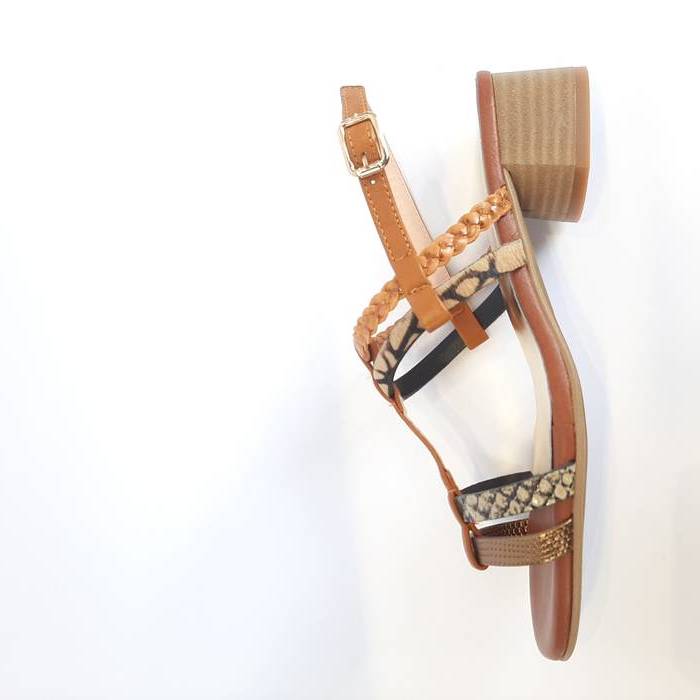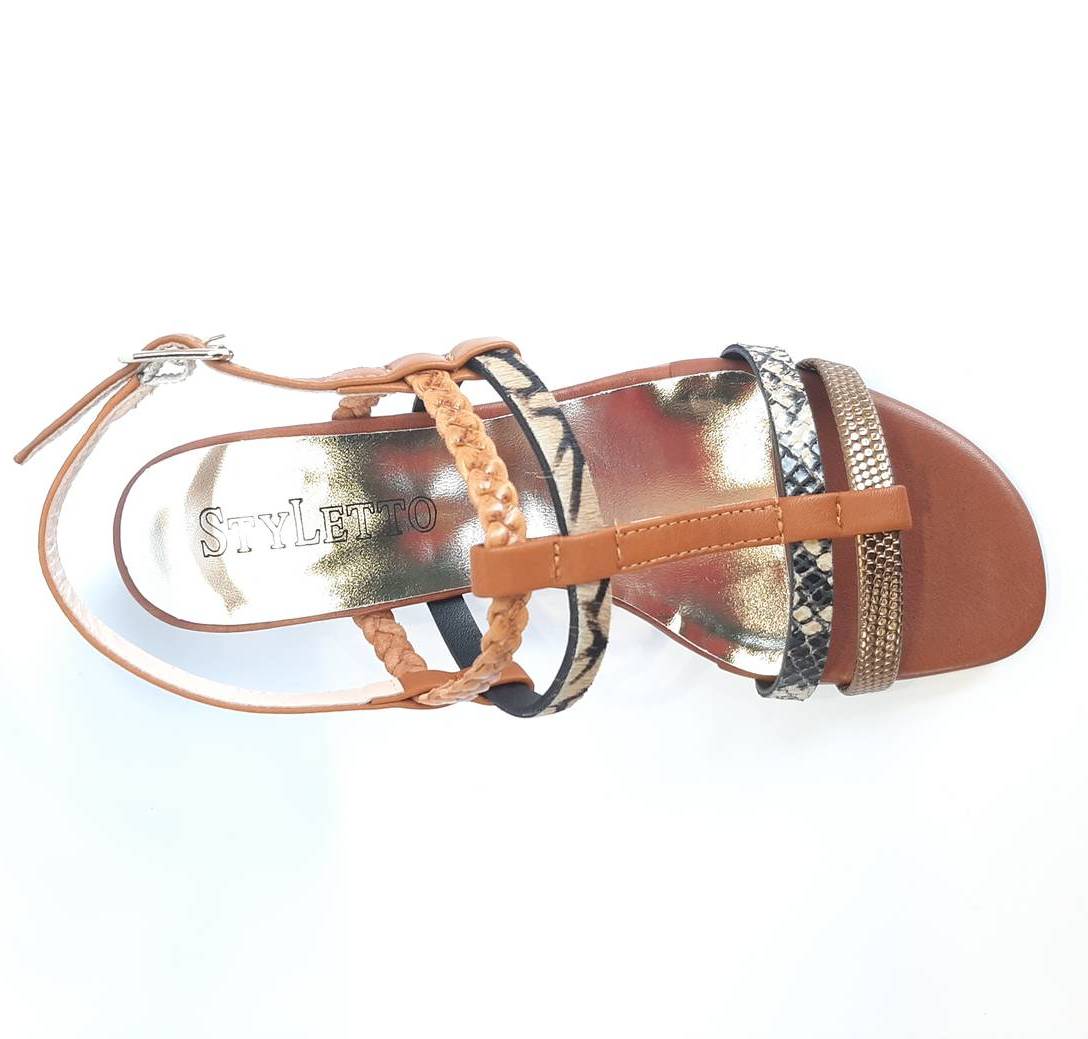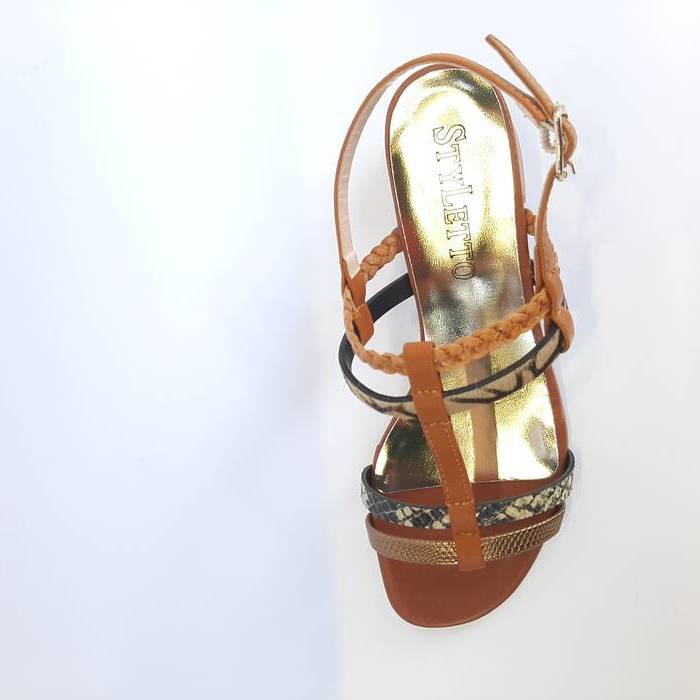 Sandalia de vestir con tacon medio en color cuero y combinado.