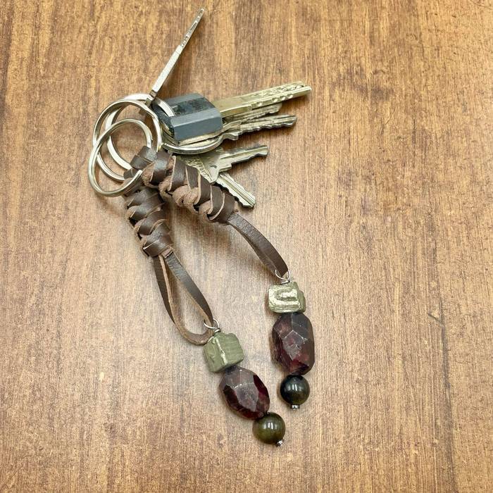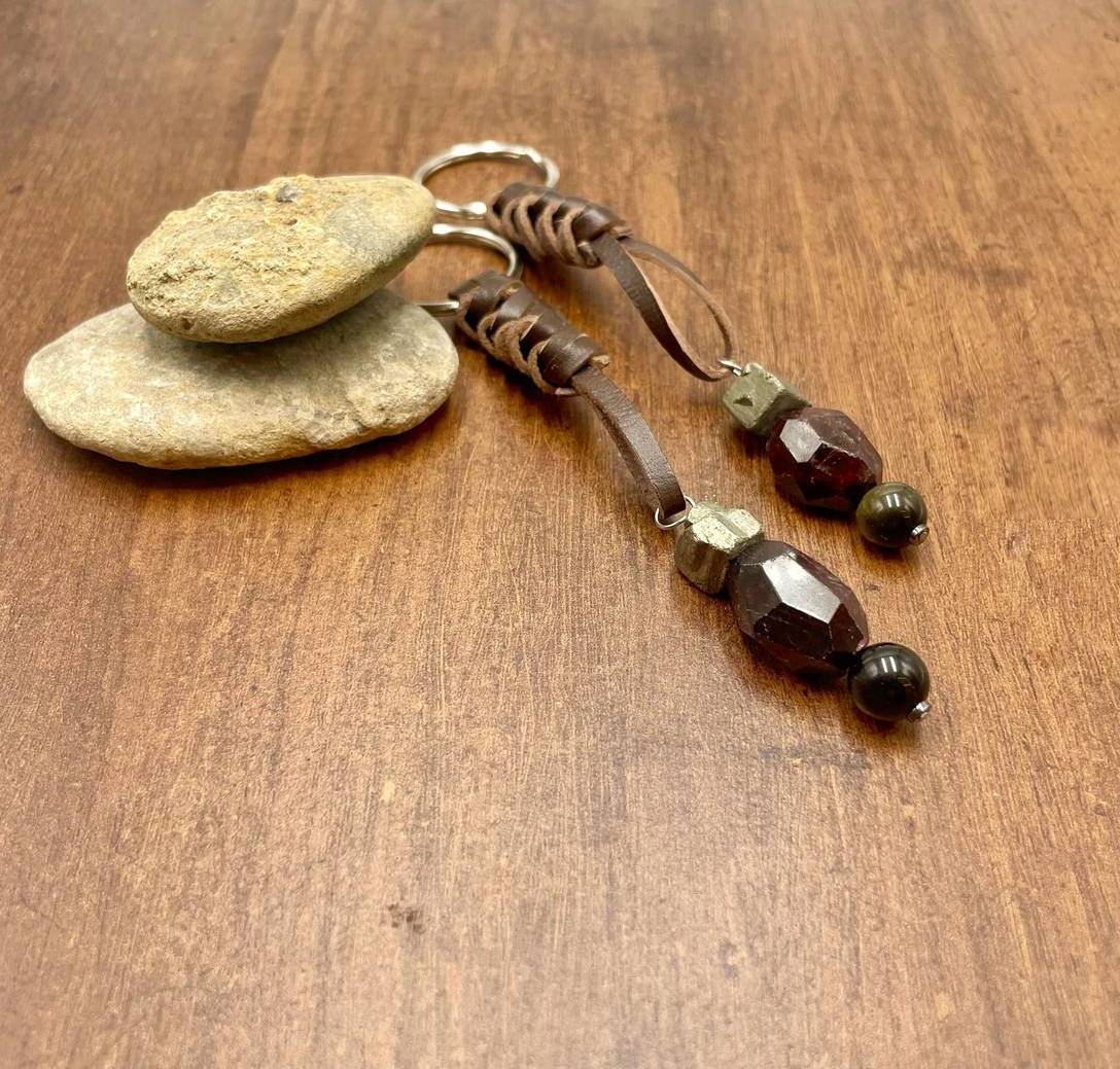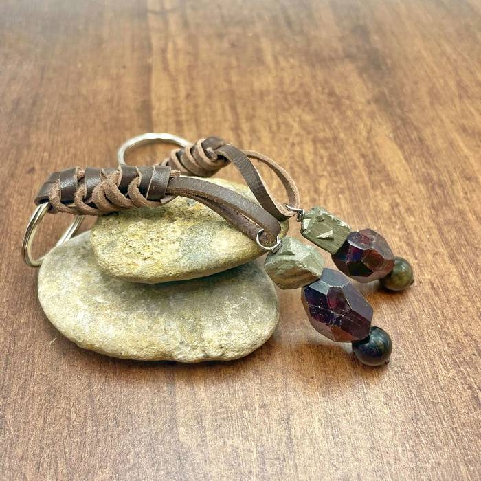 Set de dos llaveros de cuero y piedras naturales
