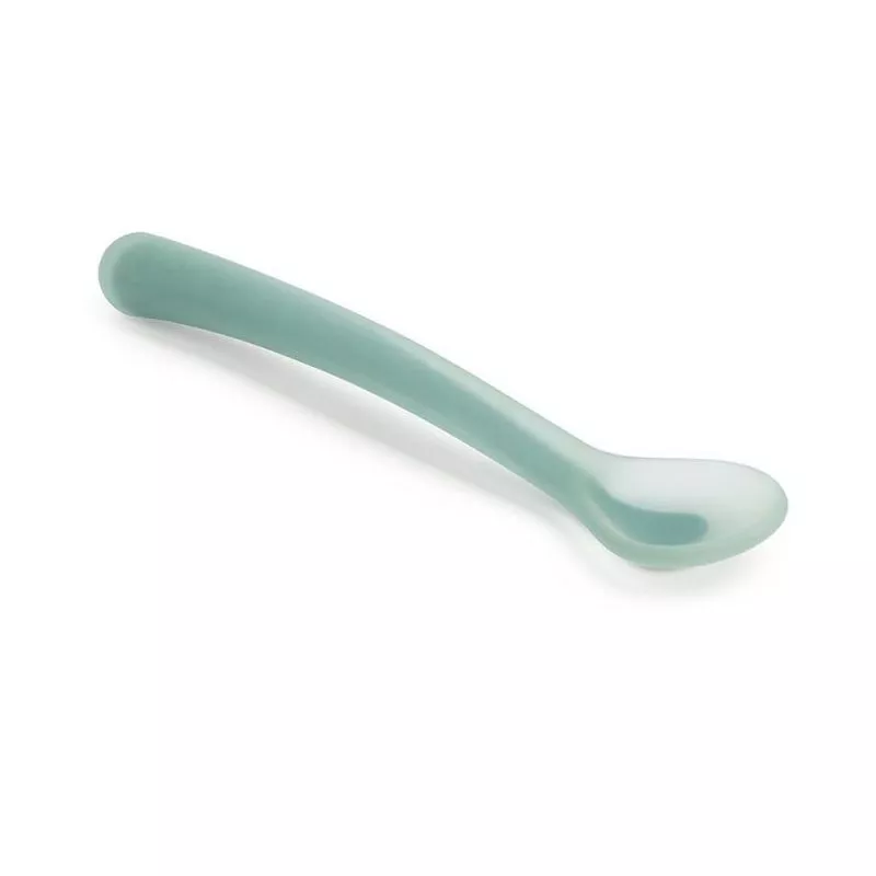 Cuchara de silicona Suavinex diseñada para bebés mayores de 4 meses, facilitando su alimentación y ayudándolos a aprender a comer solos. Con textura suave, punta flexible y fabricada en 100% silicona, es ideal para bebés con encías sensibles