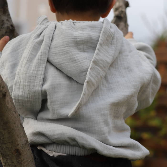 La sudadera de muselina está diseñada para ser lo más cómoda para tu bebé. Incorporamos elásticos que permiten el ajuste ideal para cualquier tipo de cabeza. Es una pieza original y confeccionada a mano con el fin de buscar el confort.