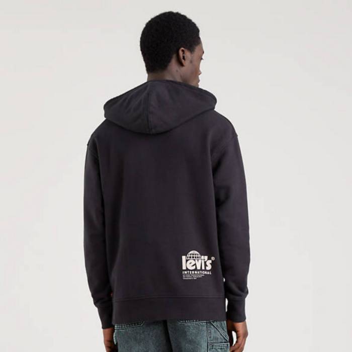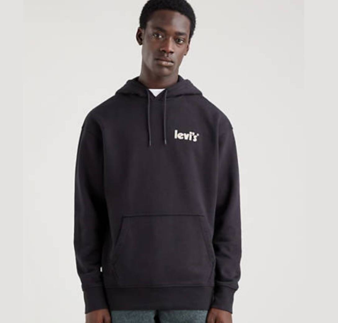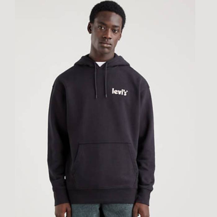 Bonita sudadera de Levis, negra, muy favorecedora, con nuevo mini logo blanco de Levis en la parte izquierda y cordón para ajustar la capucha; perfecta tanto para debajo de los abrigos en invierno, como para ir a cuerpo tanto en primavera como en otoño. Este modelo es con capucha con cuerda de ajuste que le da un aire muy juvenil. Dispone de dos bolsillo amplio a los lados. Lisa por la espalda excepto por un bonito logo de levis en la parte baja derecha. El regalo perfecto de esta navidad para los amantes de levis.