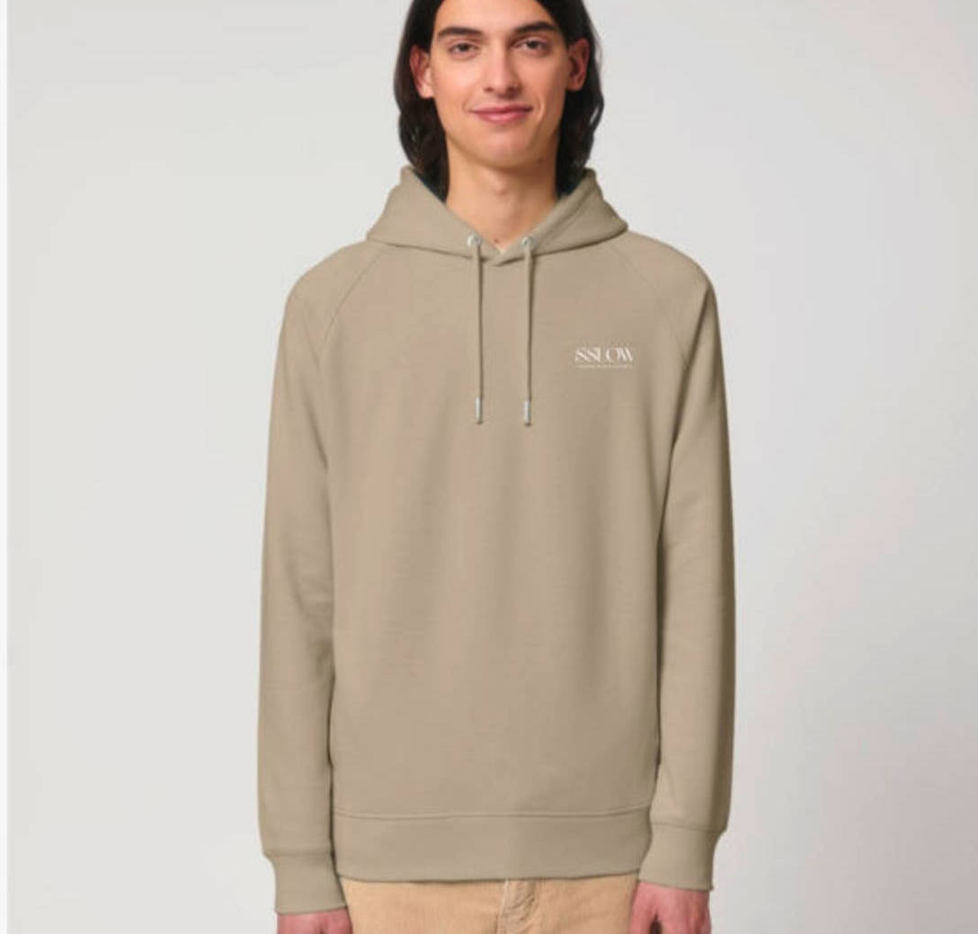 Sudadera de algodón 100 % orgánico procedente de India (con certificación GOTS) y respetando el bienestar y comercio justo en el proceso de producción (programa FWF). Una hoodie de calidad premium que entiende la #slowlife pero integrada en la conciencia social: su fabricación respeta escrupulosamente el medio ambiente y garantiza que quienes la confeccionan, lo hacen en unas condiciones de trabajo y remuneración dignos.