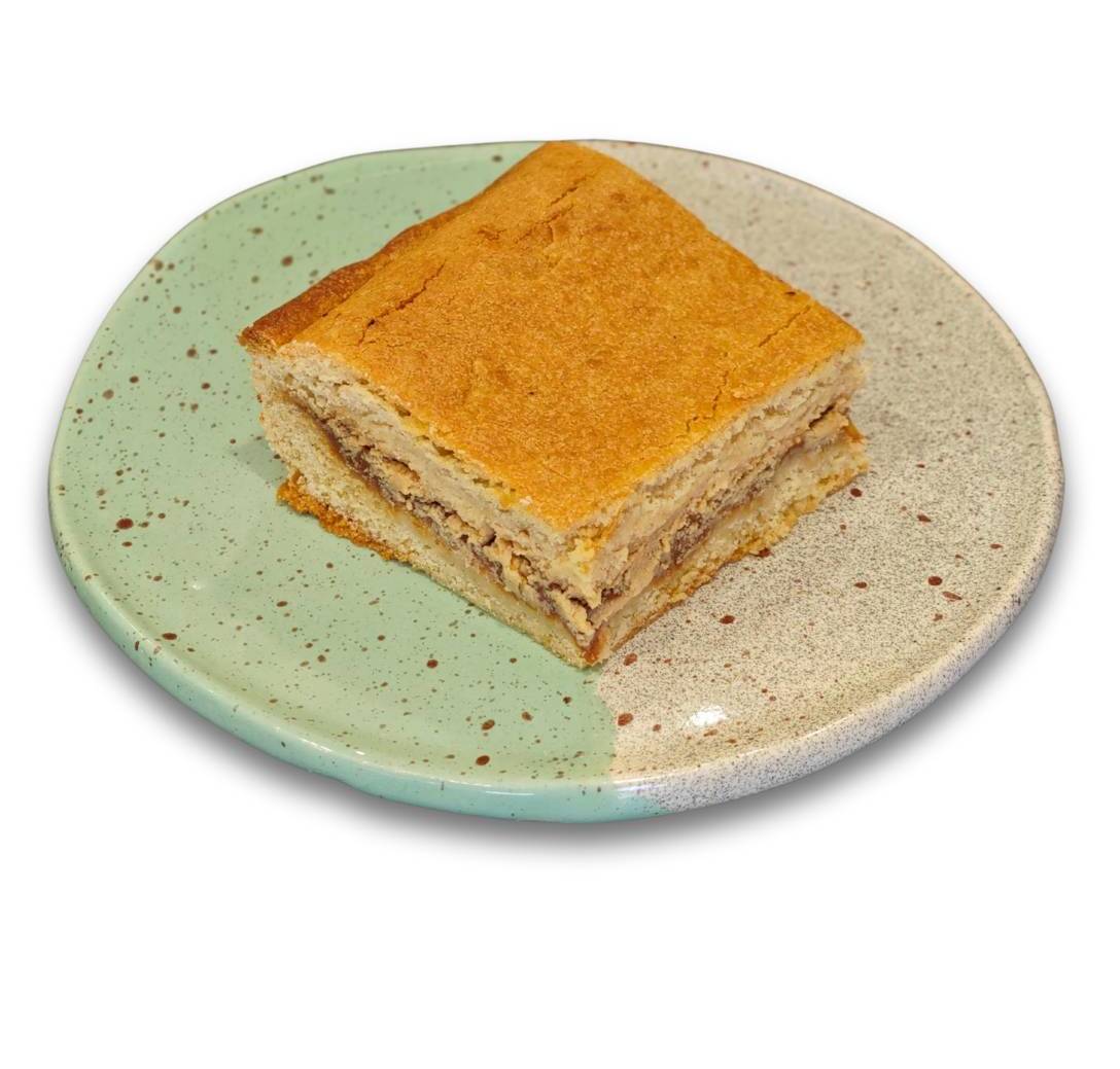 Tarta artesanal de queso ricotta y dulce de leche elaborada con materias primas de primera calidad y de forma artesanal por el equipo de Goxonela en el obrador de Egia.