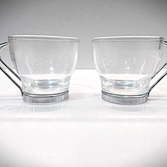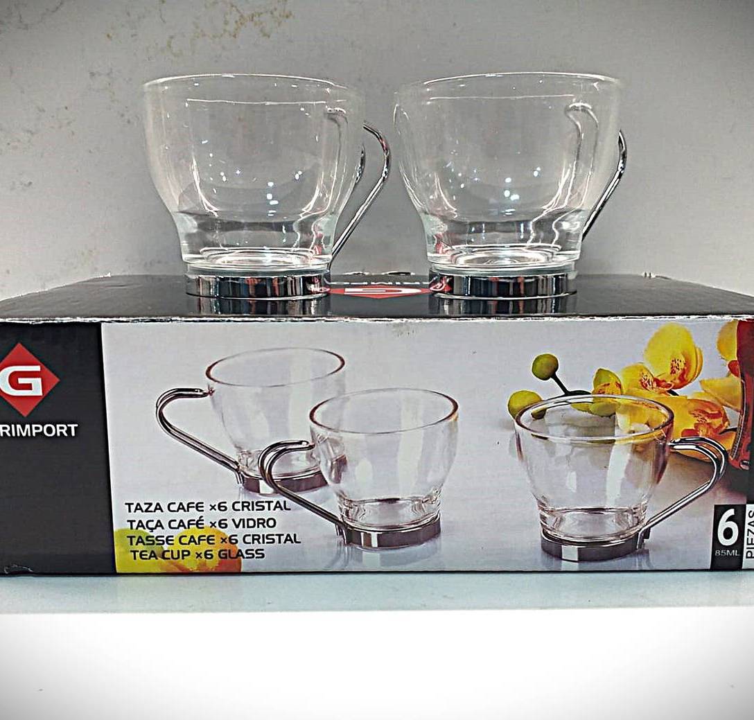 SET DE 6 TAZAS DE CAF DE CRISTAL CON ASA METALICA