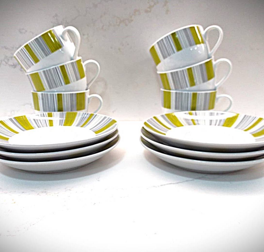 JUEGO DE 6 TAZAS DE CAFE CON PLATOS COLOR VERDE