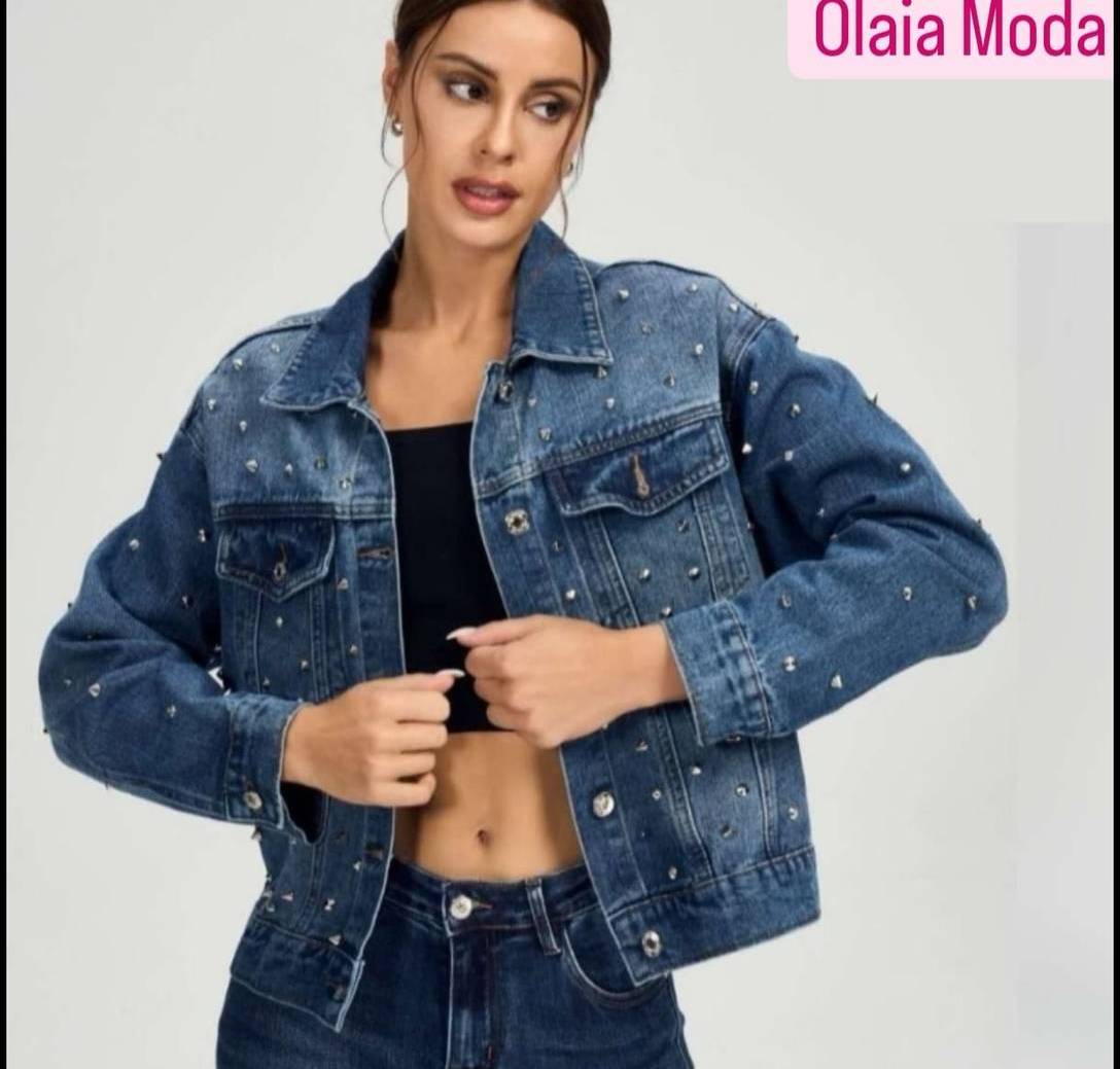 Chaqueta vaquera corte amplio algodon con detalles de tachuelas plata.