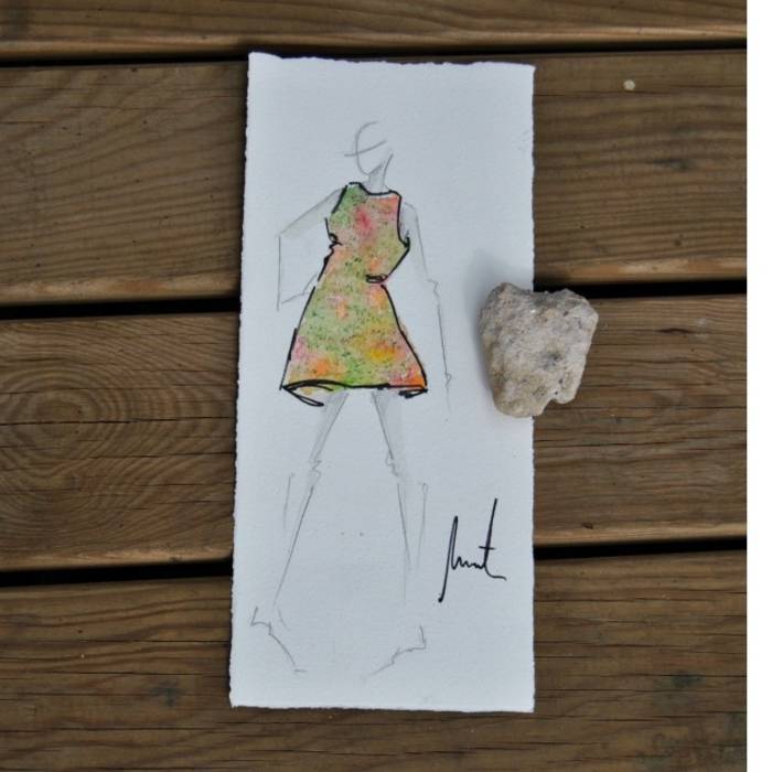 Tela de seda pintada a mano Kalana, cuya composición es terciopelo de seda 100% . La tela viene acompañada de un diseño bocetado de regalo. Es mi propuesta de diseño para esta tela en concreto, en caso de interesarte, se confecciona a medida y bajo pedido, pero puedes utilizar la tela para el diseño que prefieras.
