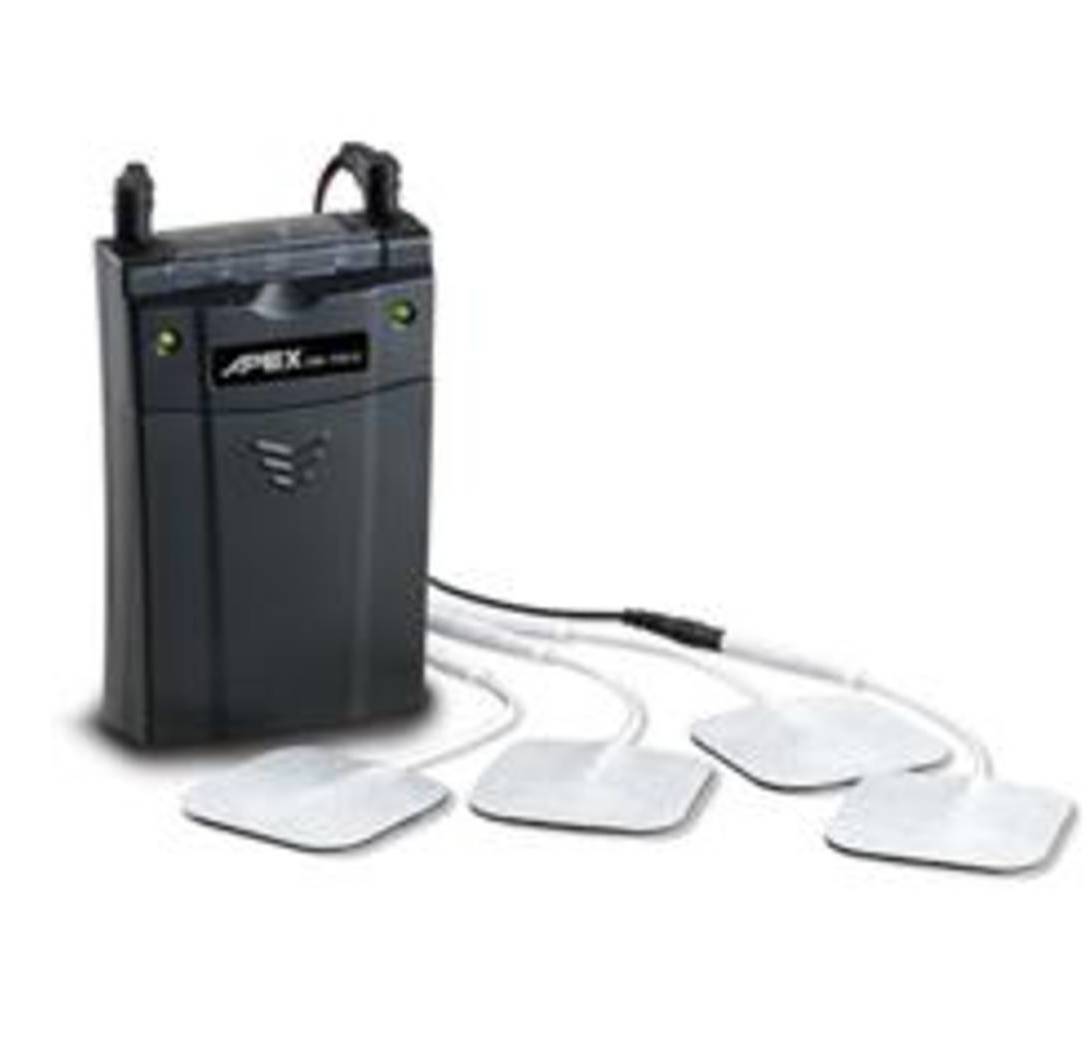 Aparato de electro estimulación del nervio periférico y ayuda en la terapia del dolor. Dolor crónico muscular o articular. Dolores de espalda, tendinitis, lesiones deportivas y dolores musculares en general. Estuche y 4 parches. Disponemos de parches de repuesto.