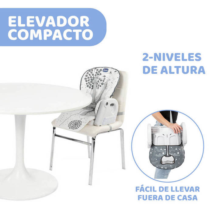 TRANSFORMABLE: Conversión simple e inmediata de trona a elevador para poder llevar a cualquier parte. Cuenta con 2 ajustes de altura y posibilidad de plegarlo para facilitar el transporte.