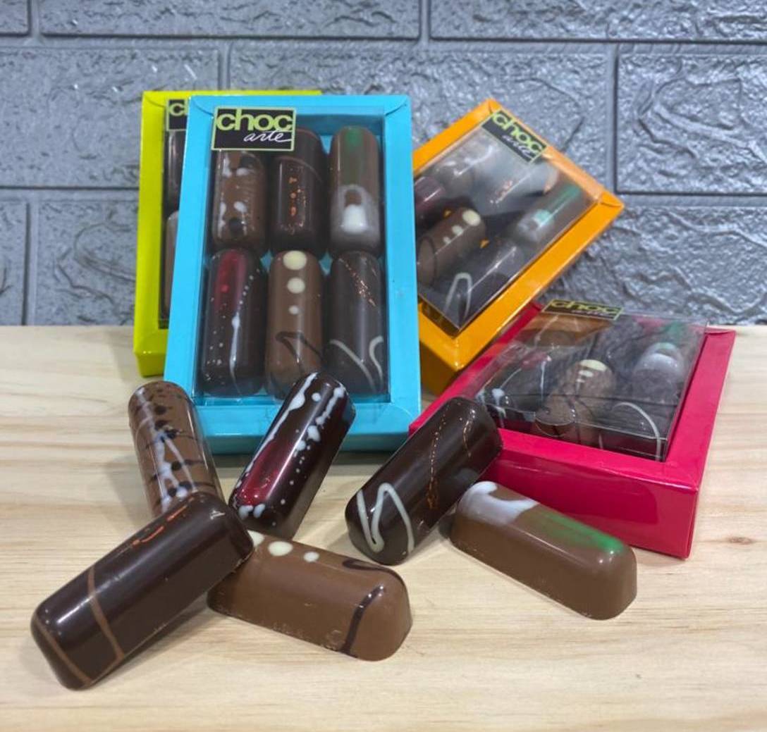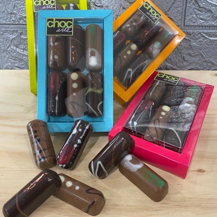 Caja de 6 Tronquitos de chocolate selectos y unicos rellenos de exquisitos pralines: Almendra, Avella, Peta Zeta, Pistacho, Cereales crujientes y Gianduja. Elaborados con el mejor chocolate sostenible y la mejor materia prima, para disfrutar de la mejor experciencia.
