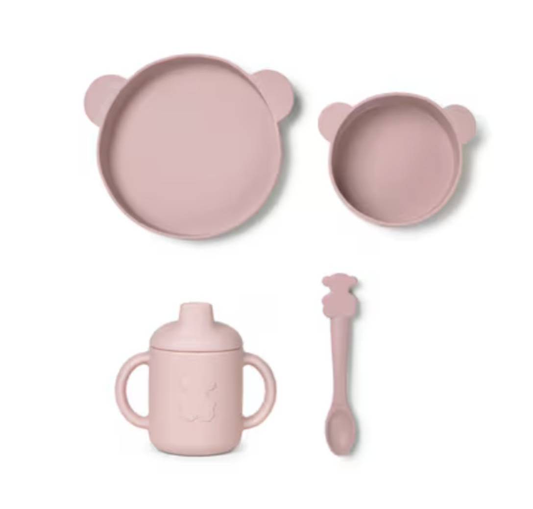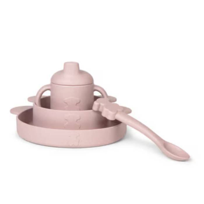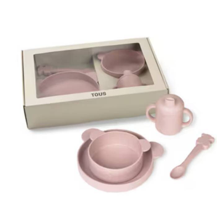 Descubre la vajilla Zoe de Tous Baby, un completo set de 4 piezas ideal para facilitar el aprendizaje de la autoalimentación desde los 6 meses. Compuesto por una taza con tapa y asas, plato, bol y cuchara, está fabricado en 100% PLA, material biológico y biodegradable. Resiste temperaturas de hasta 70º y es apto para lavavajillas (hasta 65º), garantizando un contacto seguro con la comida. ¡Un set perfecto y seguro para los más pequeños!