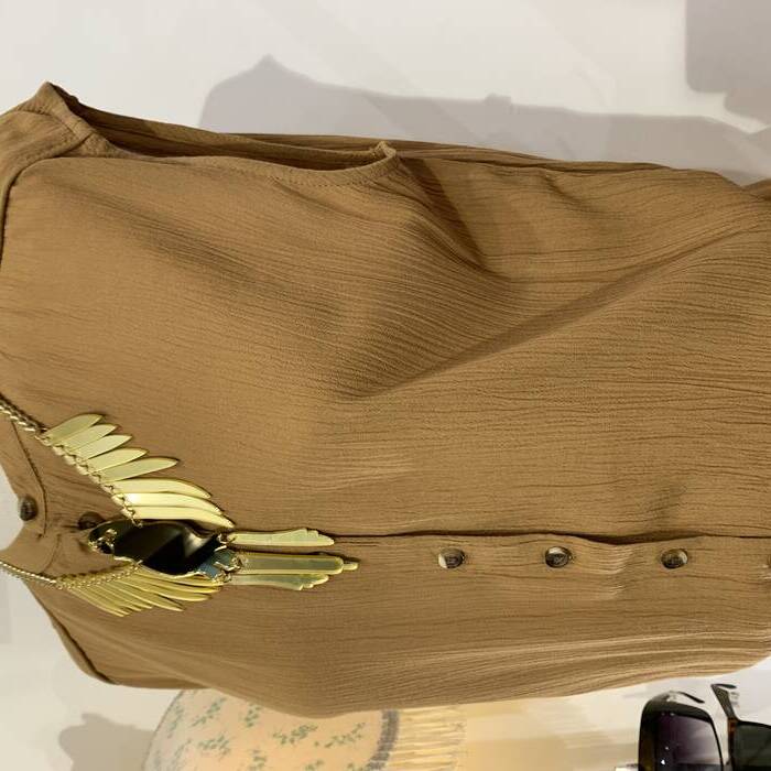 Vestido asimétrico sin mangas color arena mojada. Perfecto para día o noche dependiendo de los complementos.