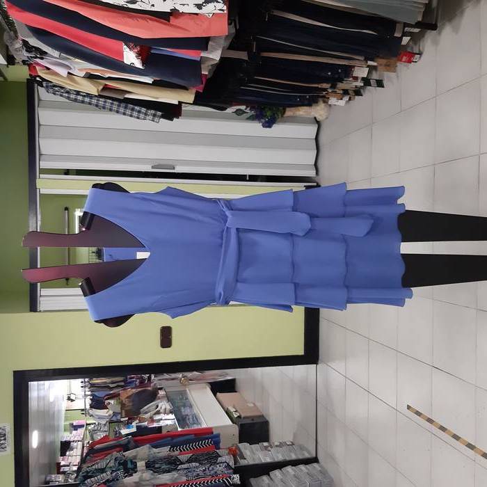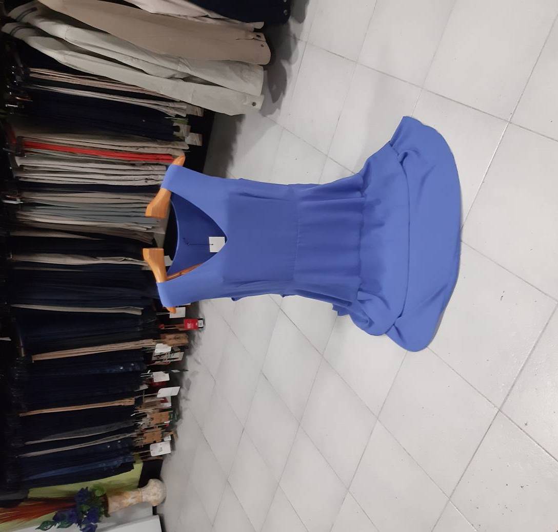 Vestido de tirantes en gasa, con volantes y cinturón del mismo tejido que se puede utilizar como fular o cinta para el pelo, muy estiloso.