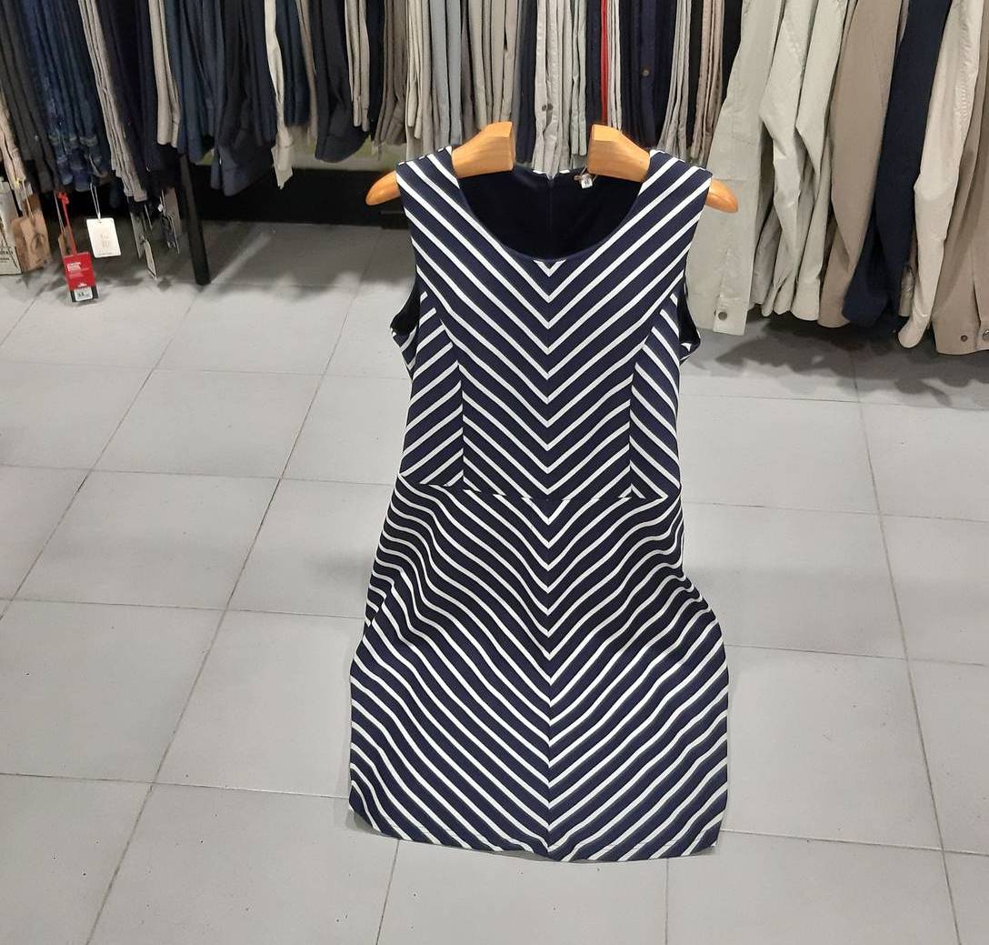Vestido de tirantes en rayas marino y blanco.