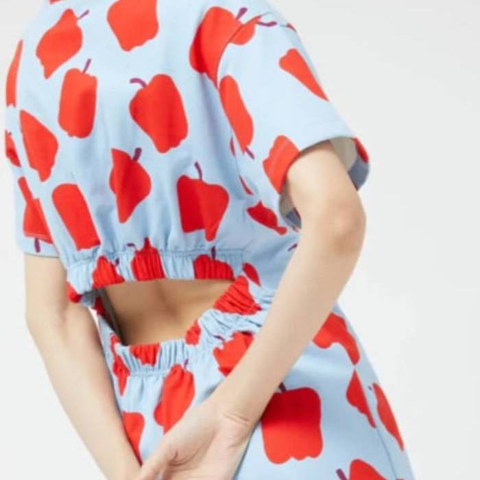Vestido algodon tipo sudadera manga corta con abertura trasera y elastico en la cintura .