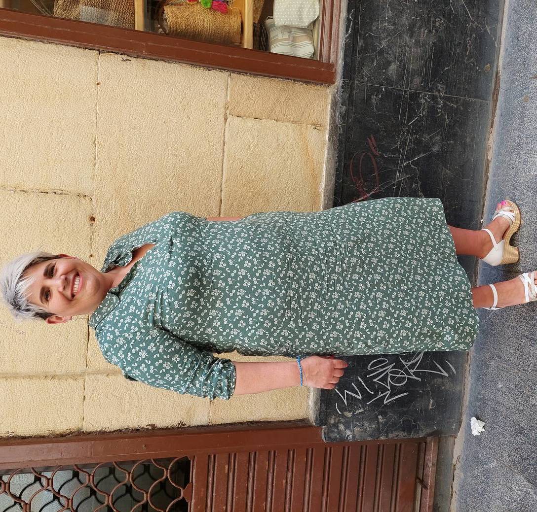Vestido estampado verde con flores crudas 98% Viscosa 2% Elastano