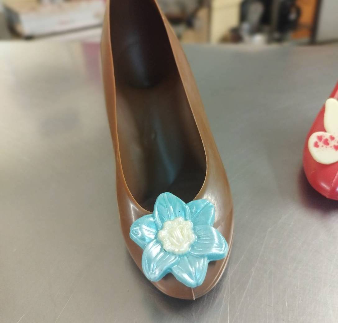 Zapato de chocolate, elaborado en cualquier sabor de chocolate (blanco, con leche y negro)y con el que sorprender con este original regalo.
