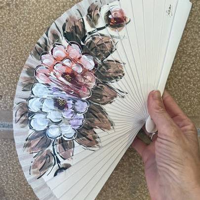 Abanico pequeño blanco floral de 19 cm