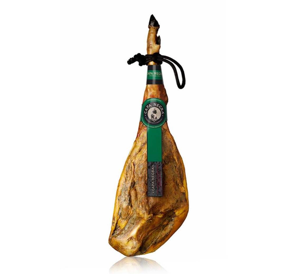 Huelvako probintzian (Andaluzia) dagoen Consorcio de Jabugo konpainiak egiten du belar-gizentzeko urdaiazpiko eder hori,% 50 iberiar arrazakoa, osorik hezurrarekin eta 7 eta 7,5 kg arteko pisuarekin, Capa Negra markarekin.