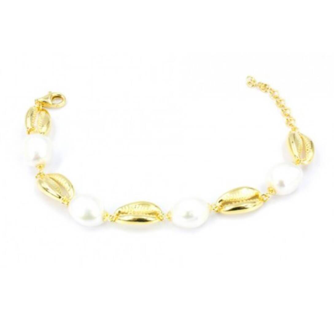Eskumuturra rodiatutako 925 esterlina zilarrezko eta urrez estalia, perlekin.