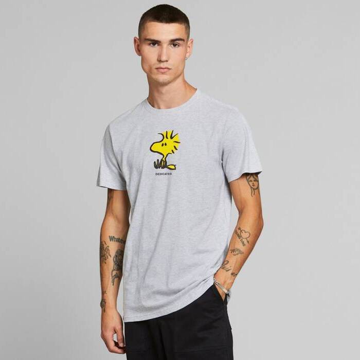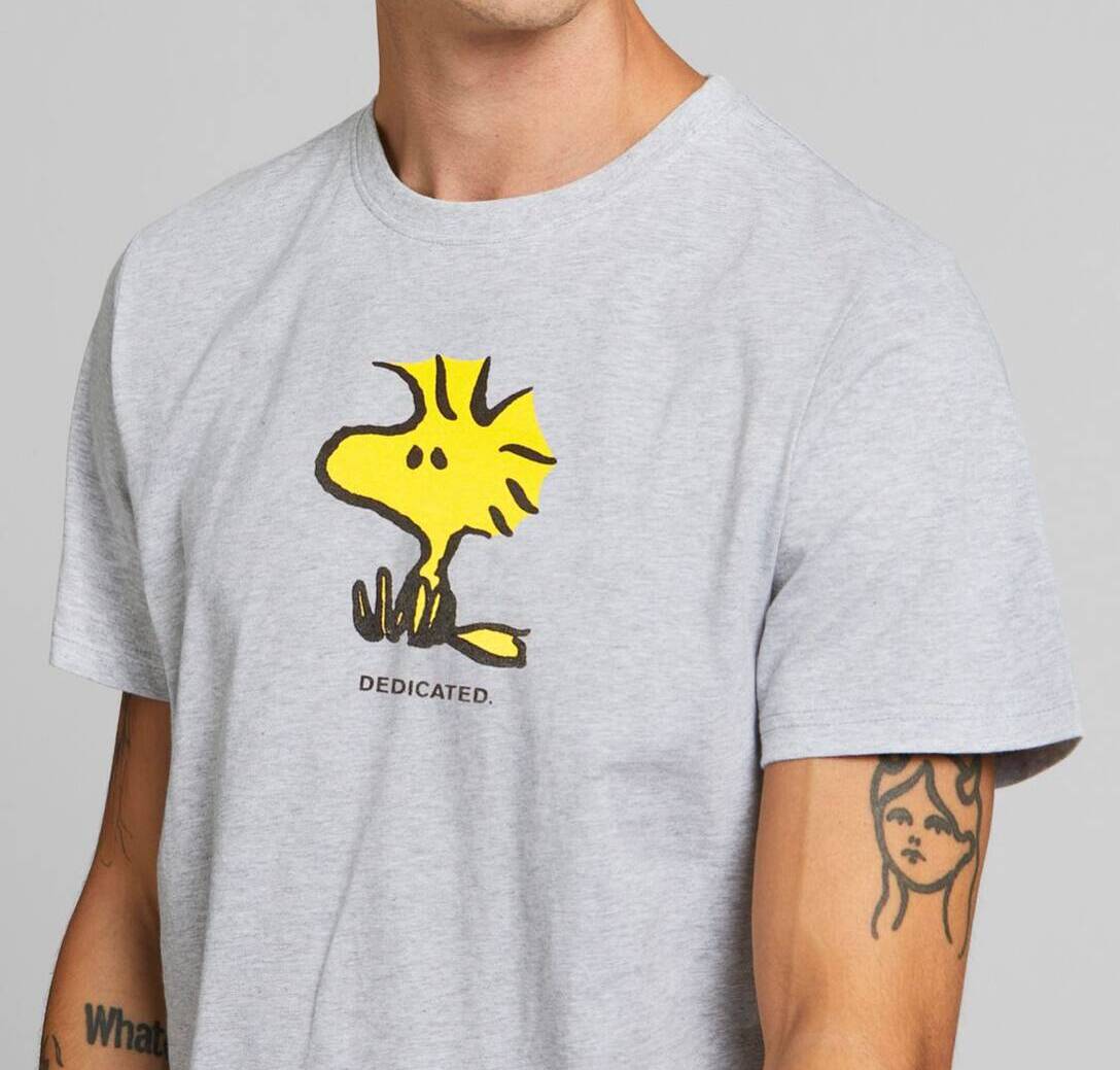 Peanutsi eskainitako bilduma mugatua aurkezten dizugu, %100 organikoa den kotoian egina. Gizonezkoentzako lepo borobileko kamiseta klasiko zizelkatua, pertsonak eta planeta zainduz modu iraunkorrean egina. Ingurumena errespetatzen duten uretako tintekin serigrafiatua. Slow fashion Dedicated da.