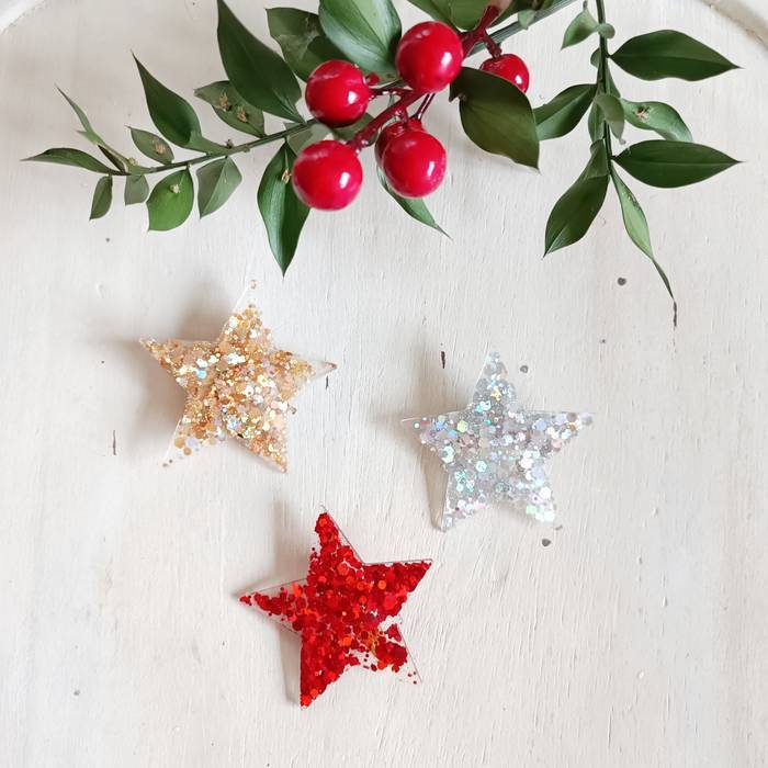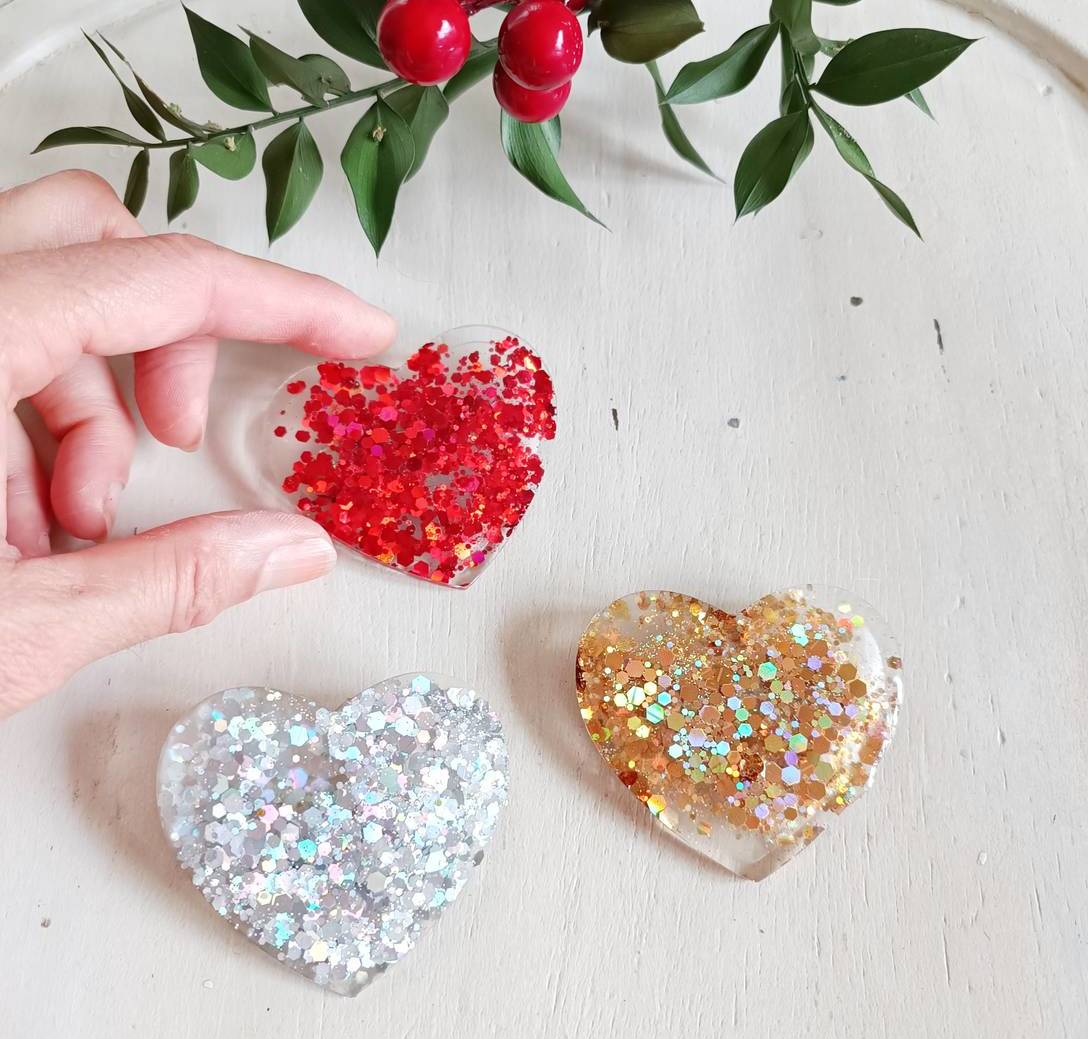bihotz edo izar formako brotxeak erretxinan. Edozein beroki, jaka edo artilezko jaka apaintzeko paparreko kolore ezberdinak.