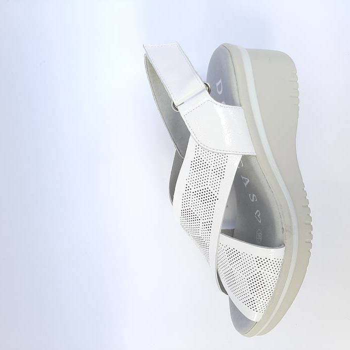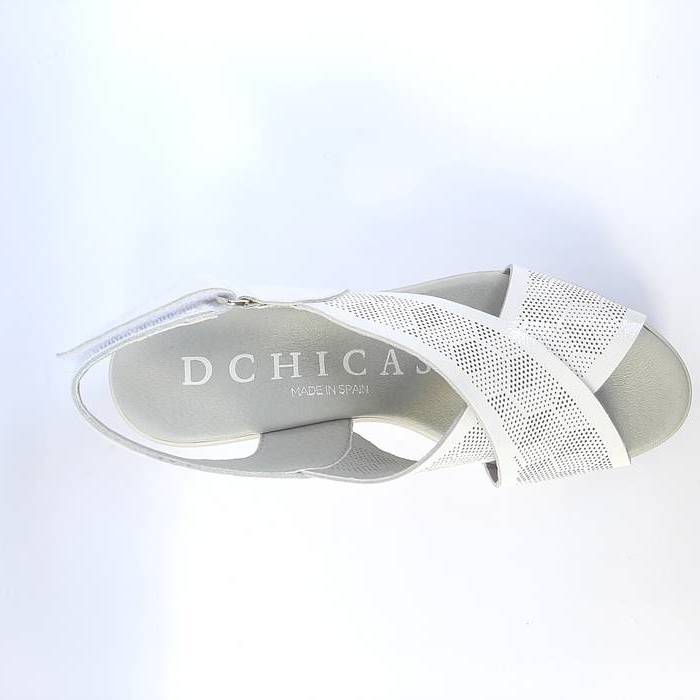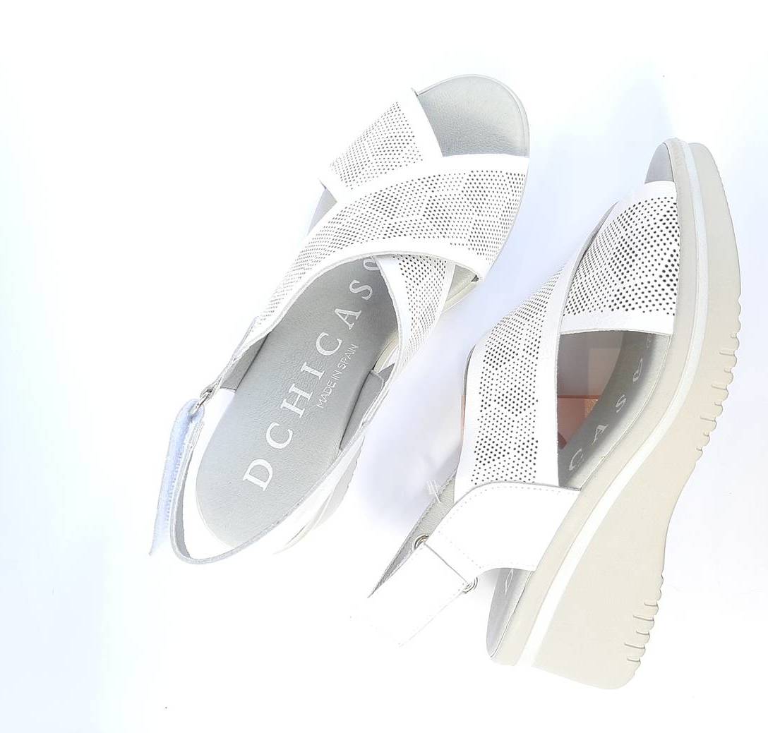 Sandalia zuria gurutzatuta, txarol-larrua, 5 cm-ko falka beix kolorekoa.