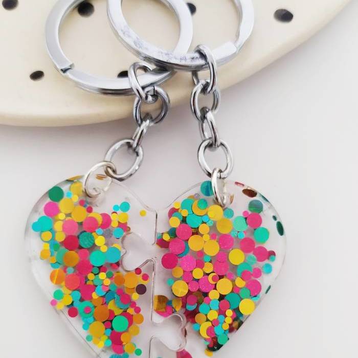 "Best FRIENDS" giltzatakoa. Bi giltzari batean. Bi giltzatako pack bat, bakoitza bihotz baten erdiarekin, ondo egokitzen dena gustukoenari oparitzeko.