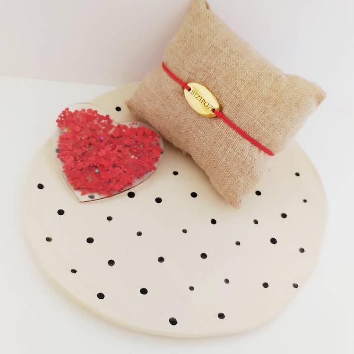 Materiala: poliester kordoia eta altzairu herdoilgaitza urrezko bainuarekin.