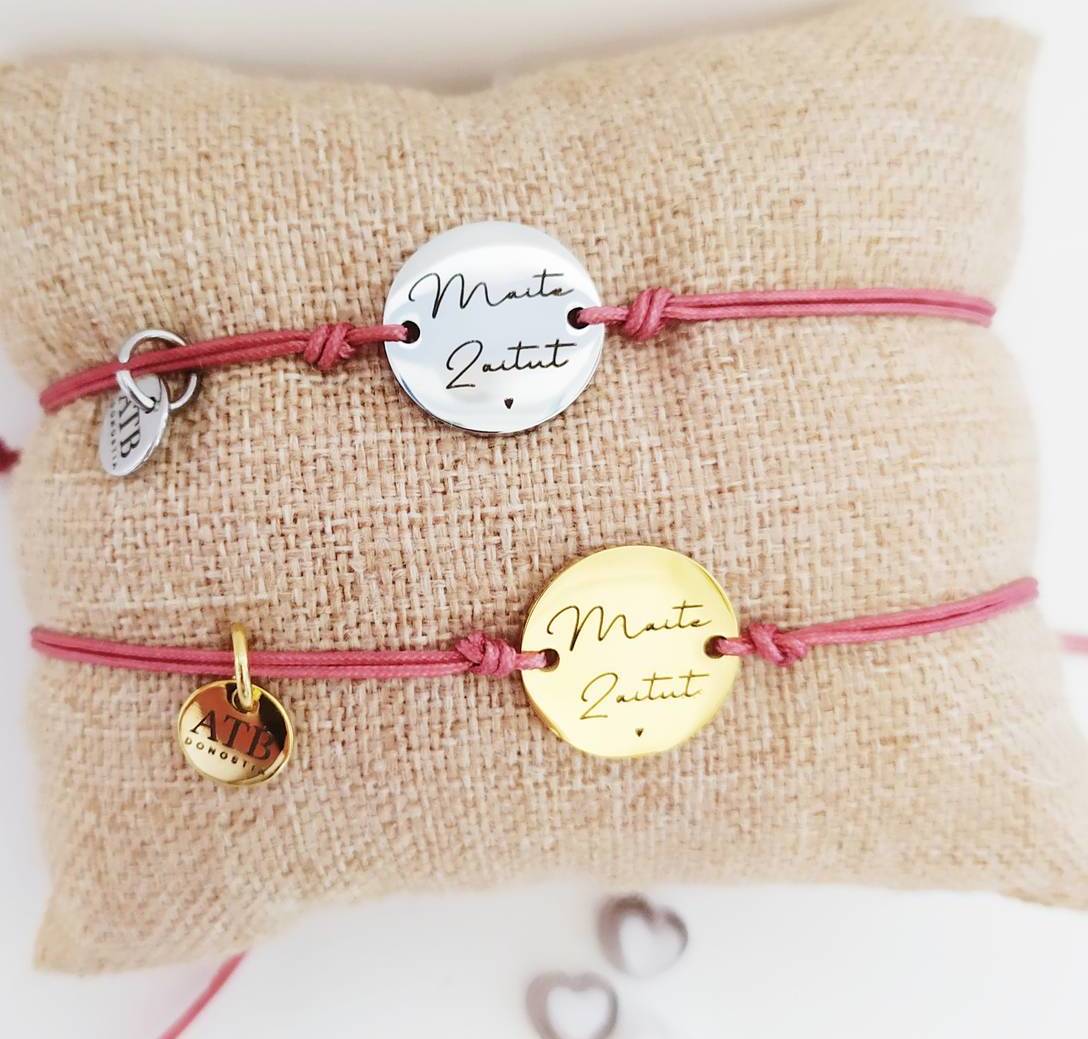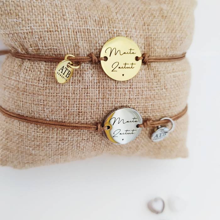 Materiala: poliester kordoia eta metala, altzairu herdoilgaitza, 18k-ko urrezko bainuarekin eta bainurik gabeko altzairu herdoilgaitzarekin.
