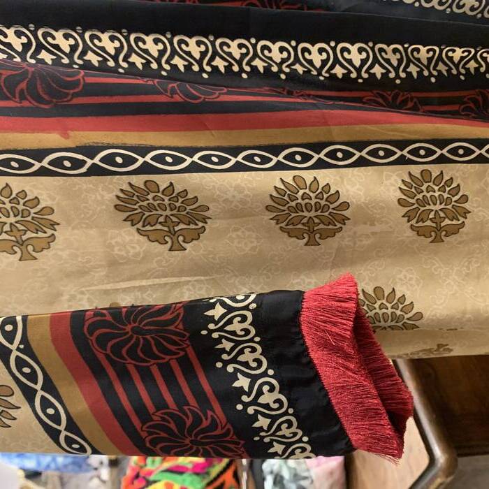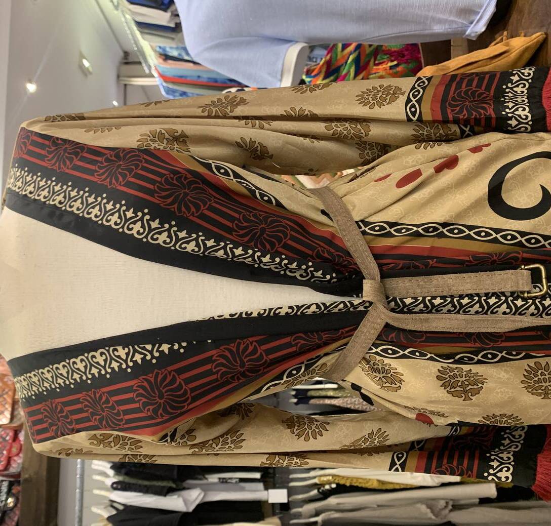 Kimono pieza bakarra zetan % 100, guztira eskuz egina. Pieza hau kimono gisa erabiliko duzu, edo, nahiago baduzu, jantzi gisa. Pieza hau interesatzen bazaizu, pasa zaitez dendatik hainbat estanpaturen aukeraketa bat ikusteko. Tailu bakarra.