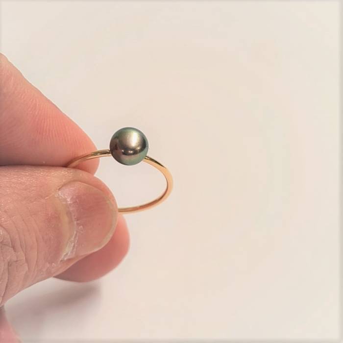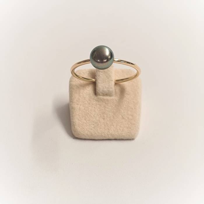 18k-ko urre horizko eraztuna eta ur gezako perla grisa