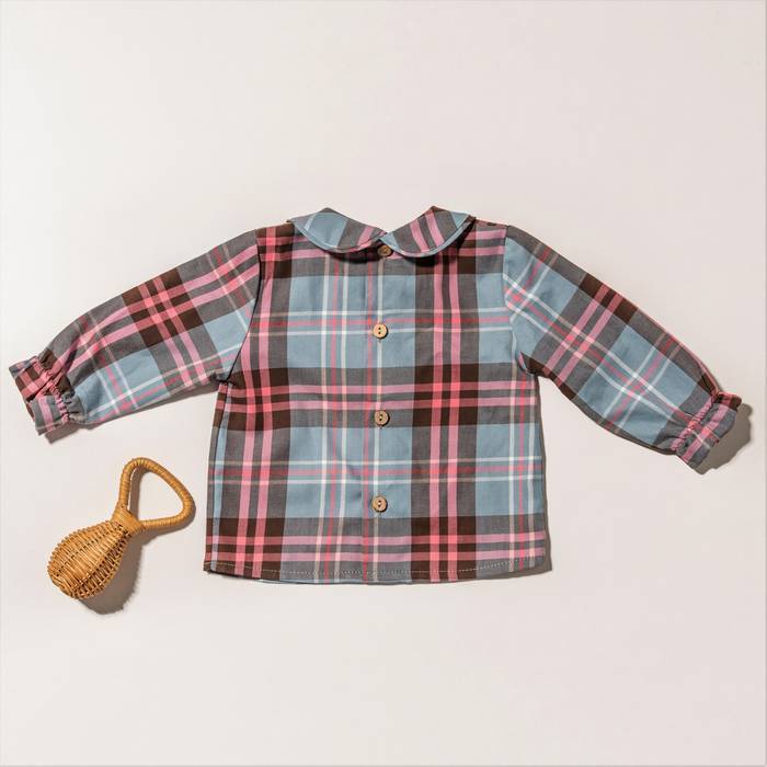 Mahuka luzeko blusa. Lepo txikia eta eskumutur elastikoak ditu. Bizkarra irekita dauka kokozko botoi naturalekin.