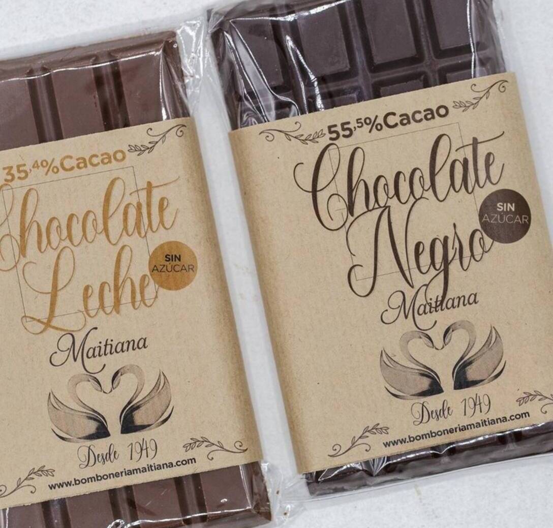 Azukrerik gabeko txokolatezko tabletak (Maltitol edulkoratzailea) Bi zapore aukeran: txokolatea esnearekin eta txokolate beltza,