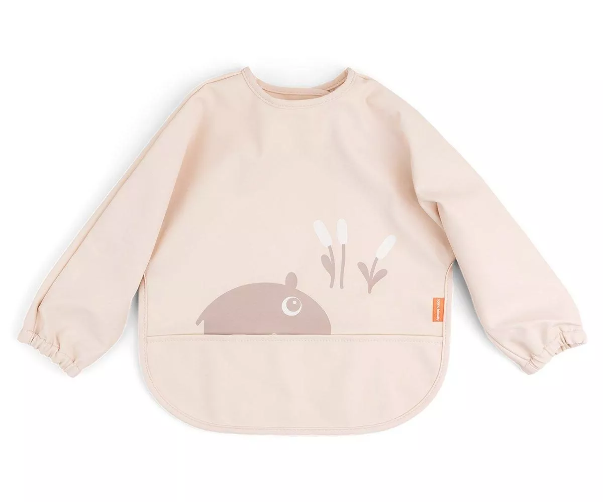 Baberoa belkrozko itxiturarekin. Babestu zure umearen arropa zikindu ez dadin. Primeran txikiek janariarekin bakarrik praktikatu behar dutenean.