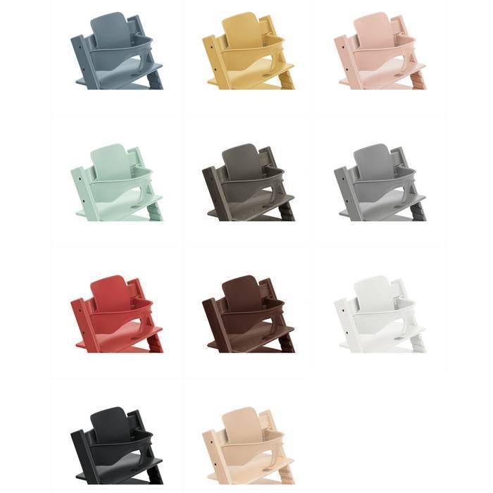 Sei-bederatzi hilabete inguruan, zure haurra gai izango da laguntzarik gabe zuzen esertzen hasteko. Baby Set ontziak bizkarralde altu bat du eta eusteko barra bat, zangoarteko uhalarekin, umetxoari mahaian seguru eta eroso esertzeko aukera ematen diona. 2003ko maiatzaren ondoren ekoitzitako Tripp Trapp europar bertsiora egokitzen da
