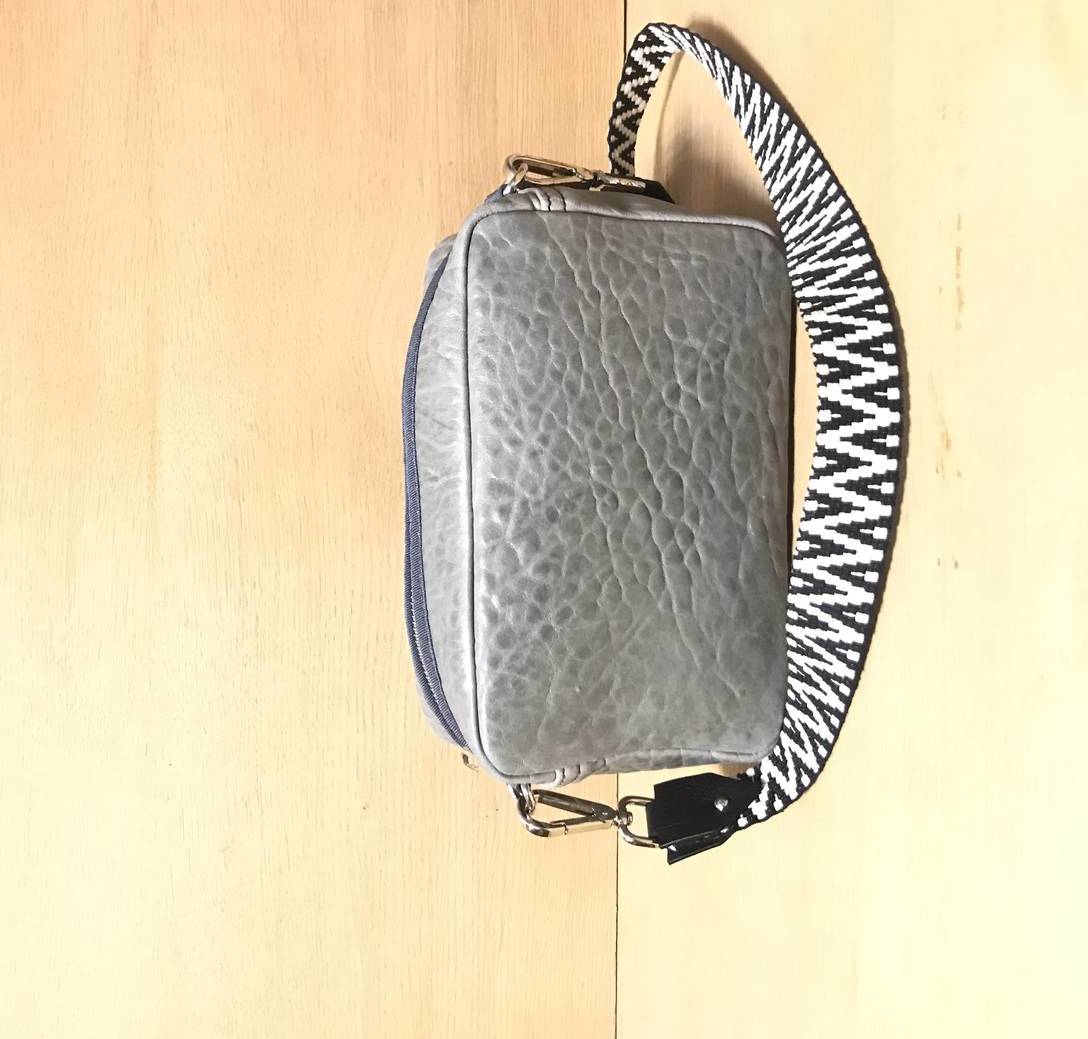 Bandolera duen behi-larruzko kremailera-poltsa txikia